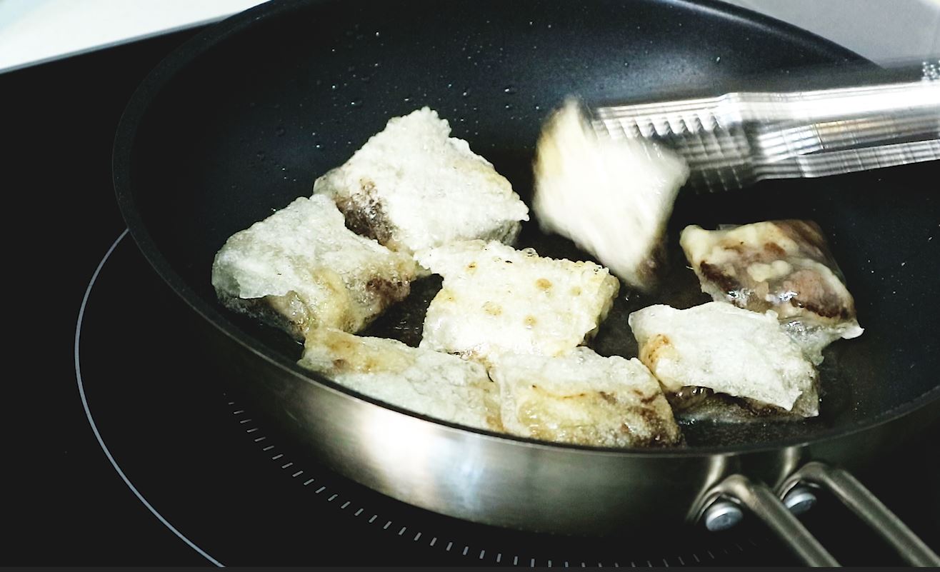 5.프라이팬에 넉넉히 기름을 둘러주세요